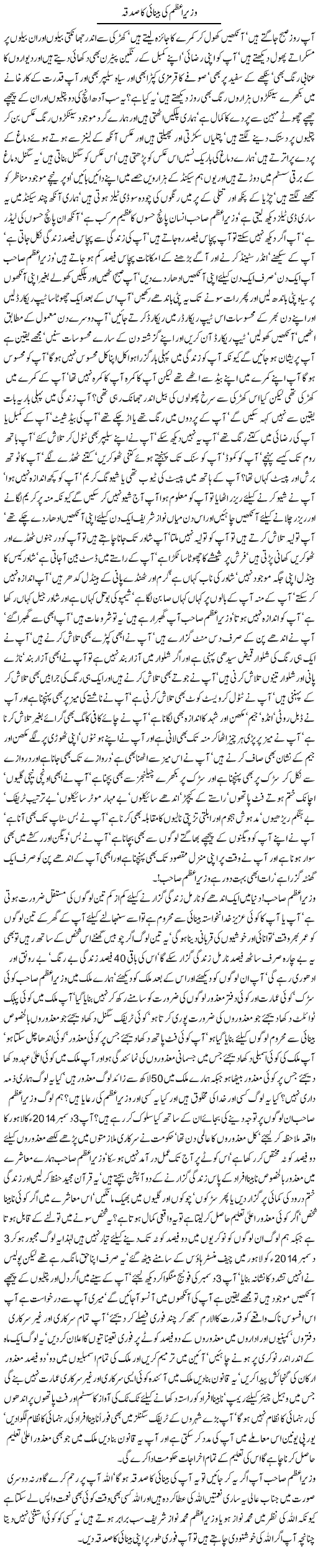 Wazir e Azam Ki Benai Ka Sadqa - by Javed Chaudhry - 5th December 2014